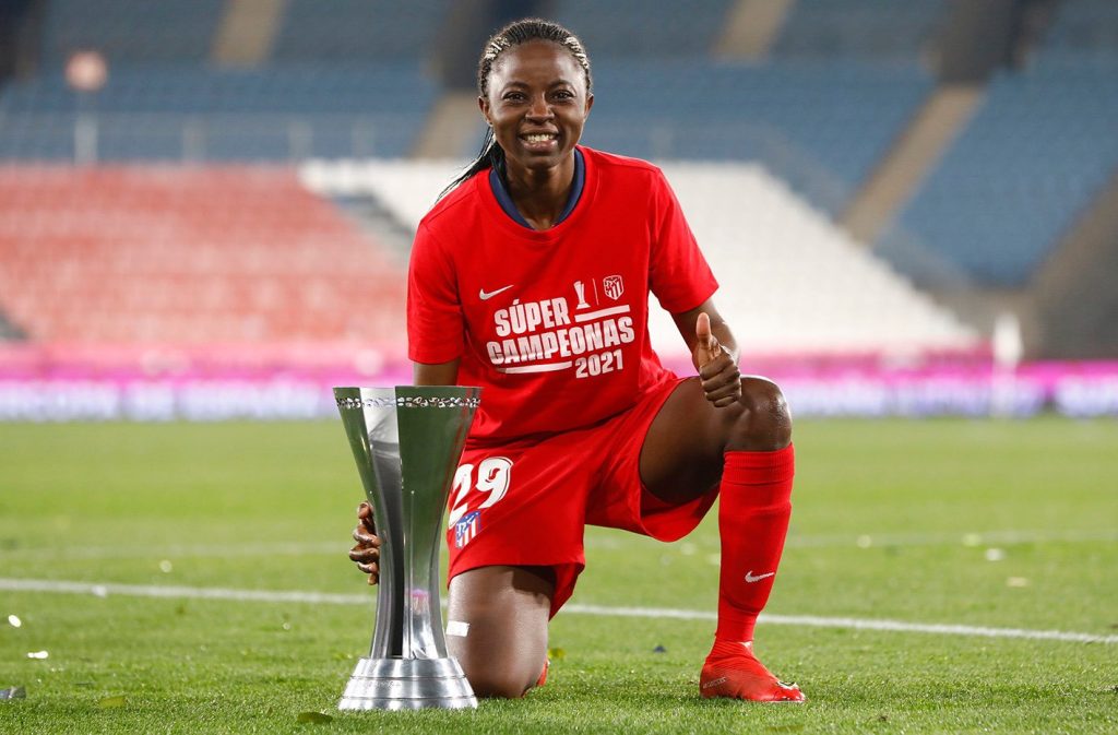 La « lionne » Ajara Nchout Njoya – qui faisait ses débuts chez les « Indias » (encore un surnom de l’Atletico Madrid – ndlr), a réussi à montrer ses qualités de buteuses et remporte ainsi son tout premier trophée avec ses nouvelles couleurs après le doublé réussit en fin de l’année passée avec son ancien équipe, le Club norvégien FC Valerenga.