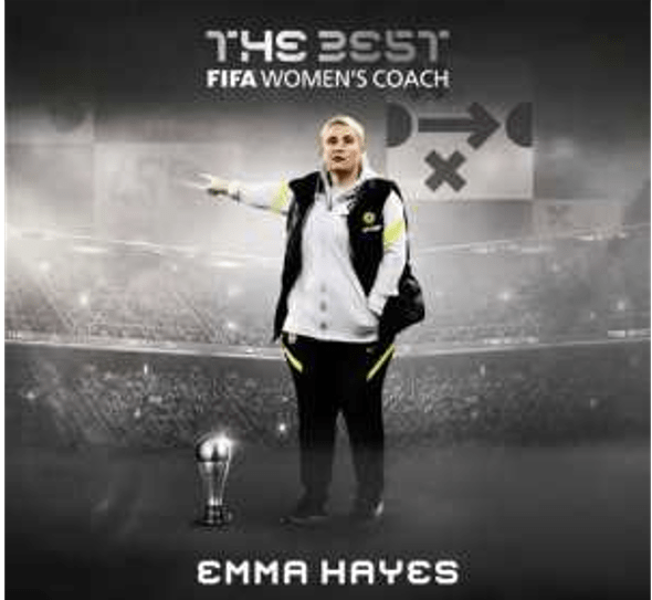 Côté entraîneur, c’est Emma Hayes, entraîneur de Chelsea qui a été sacré victorieuse du The Best Entraîneur de la FIFA pour le football féminin.