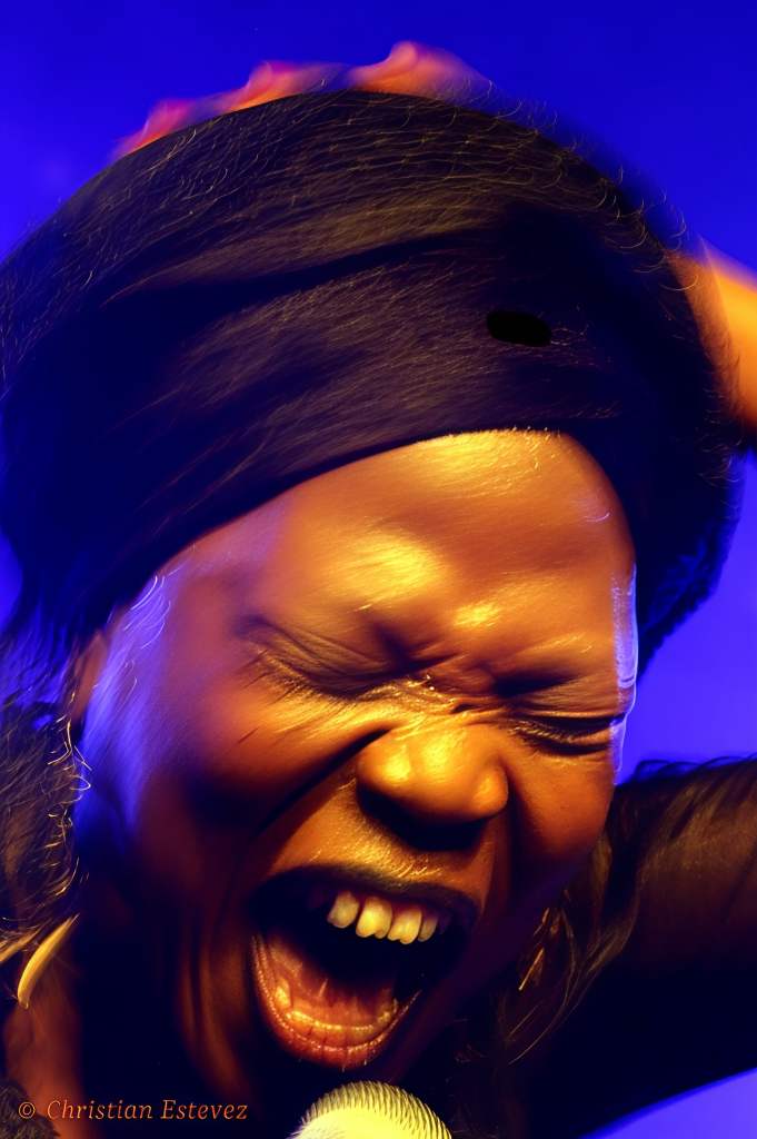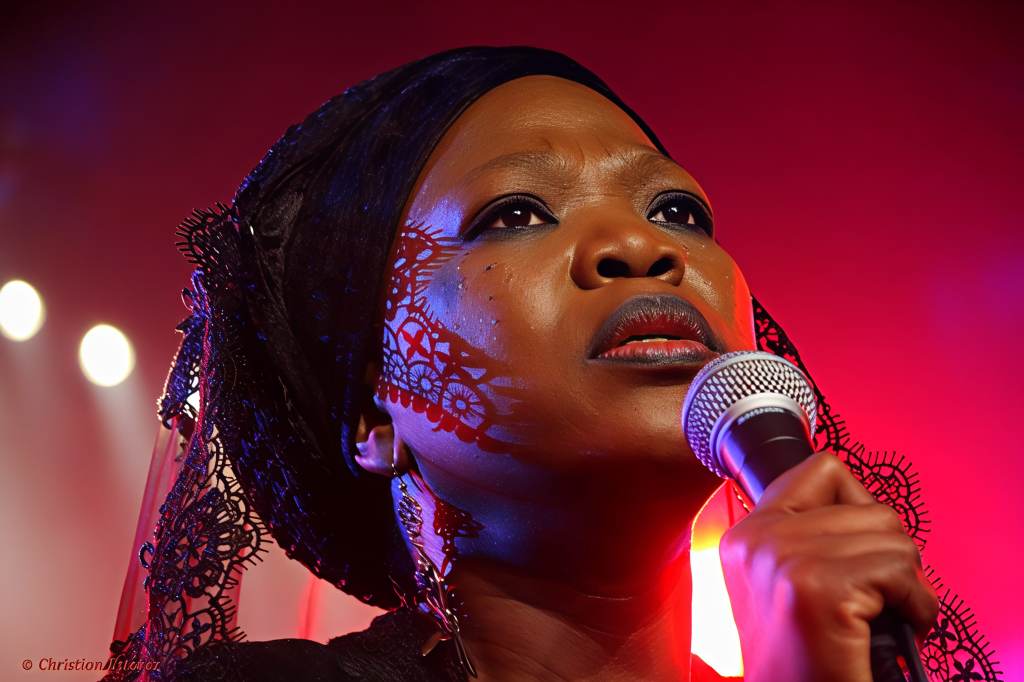 N.B.: La salle n’étant pas vraiment adéquate pour la puissance de la musique de Moonlight Benjamin, il en est résulté du « gros bruit » sur la majeure partie de nos clichés numériques, se matérialisant, sur les photos, d’une légère tâche noire jusqu’au « grand trou noir ». Nous avons pris le parti de mettre une partie des clichés ayant subis cet effet malencontreux, espérant trouver le temps, dans un avenir pas trop éloigné, pour réussir à les retoucher correctement et, ainsi, vous les reproposer.