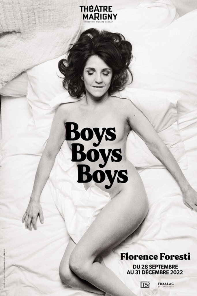 Ce mardi 10 mai, Florence Foresti a dévoilé l’affiche de son prochain spectacle, intitulé “Boys Boys Boys”. Impossible de lire son titre sans l’entendre également, tant la référence au tube des années 80 de la chanteuse Sabrina est évidente.“ Je suis folle de joie ET super stressée de vous annoncer cette nouvelle”, écrit Florence Foresti sur Instagram. Trois ans après « Épilogue », son dernier seule en scène en date, Florence Foresti apparaît dénudée sur l’affiche en noir et blanc,