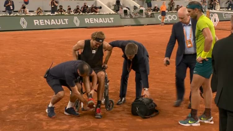 L’espagnol jouera sa 14e finale sur la terre battue parisienne dimanche contre Casper Ruud (8e) ou Marin Cilic (23e). Zverev a abandonné alors qu’il était mené 7-6 (10/8), 6-6 après un bras de fer de plus de trois heures. Zverev s’est violemment tordu la cheville droite après son ultime frappe et a été évacué dans un fauteuil roulant avant de revenir en béquilles officialiser son abandon.