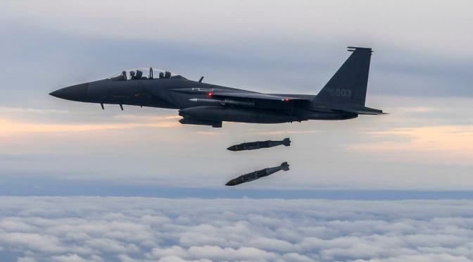 Le Mardi 4 octobre dernier, des avions de combat sud-coréens et états-uniens avaient déjà mené des exercices de frappe de précision, selon Séoul, avec le largage de bombes sur une cible virtuelle dans la mer Jaune par deux avions de combat sud-coréens F-15K Eagle.