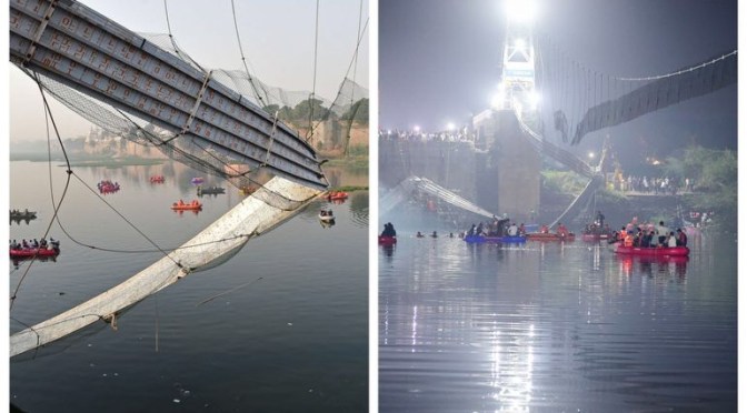 Un pont piétonnier suspendu enjambant une rivière, s’est effondré dans l’État du Gujarat. Au moins 137 personnes sont mortes, a indiqué un membre du gouvernement local.