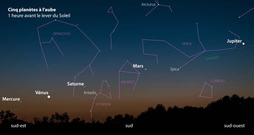 Ce mois-ci, les cinq planètes seront dans la même région du ciel nocturne. Cependant, selon votre emplacement, il peut être difficile de les voir tous en même temps. Selon Rick Fienberg, conseiller principal de « l’Union américaine d’astronomie », vous ne pourrez pas voir Jupiter et Mercure tant que le ciel ne sera pas dégagé et que l’horizon Ouest ne sera pas presque plat et dépourvu d’obstacles tels que des arbres ou des bâtiments.