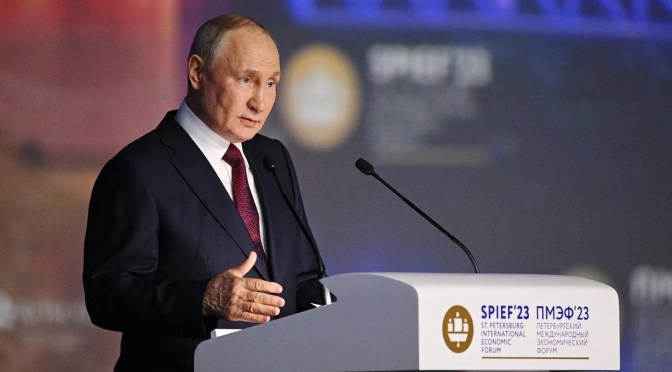 Toujours lors de ce forum, le président russe a assuré, évoquant une offensive de Kiev en cours dans le Sud de l’Ukraine, que « les forces armées ukrainiennes n’ont aucune chance là-bas, ni dans les autres zones ». Il a réaffirmé que l’Ukraine subissait de « très lourdes pertes » et estimé qu’elle ne pourrait combattre « pendant longtemps » en raison de l’épuisement de ses équipements militaires.