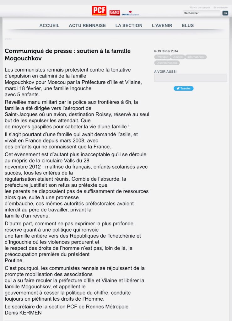 Quelques années auparavant, en 2013, la famille avait soumis une première demande d’asile qui avait été rejetée. L’année suivante, en 2014, alors qu’elle résidait à Rennes (Ille-et-Vilaine) à l’époque, la famille avait été visée par une tentative d’expulsion en direction de la Russie. Toutefois, suite à la mobilisation de plusieurs associations de gauche et les céllule locales du parti communiste et du front de gauche, faisant dans le pseudo-humanisme qu’est la pitié, cette expulsion avait été annulée.