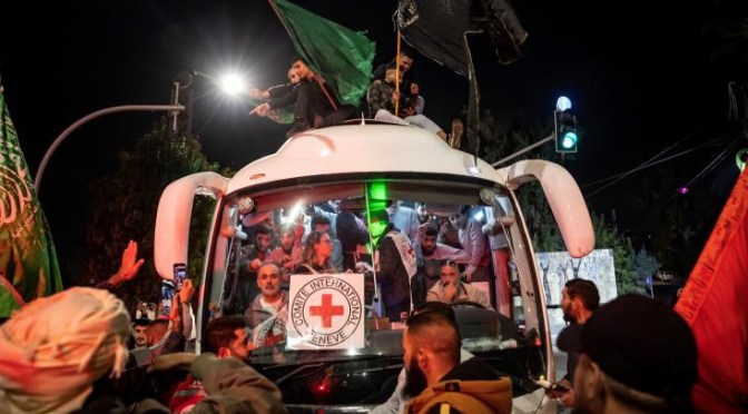 L’accord initial prévoyait quatre jours de trêve, l’entrée d’aide humanitaire à Gaza depuis l’Egypte, ainsi que la libération d’un total de 50 otages enlevés le 7 octobre et de 150 Palestiniens détenus dans des prisons israéliennes, le Hamas ayant imposé le ratio de 1 otage contre trois prisonniers islamistes palestiniens, pour valider la première trêve.