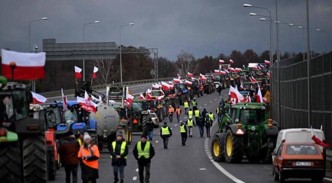 Une centaine de routes et de points de passage frontaliers vers l’Ukraine étaient bloqués par des agriculteurs polonais ce mardi 20 février. Ces derniers accusent Kiev de « concurrence déloyale », pointant du doigt des importations agroalimentaires ukrainiennes jugées « incontrôlées » à cause de l’exemption des droits de douane accordée aux produits agricoles ukrainiens et de réclamer une révision des règles européennes. Ces actions s’inscrivent dans un large mouvement de protestations de paysans à travers le continent européen, reprenant généralement les mêmes revendications.