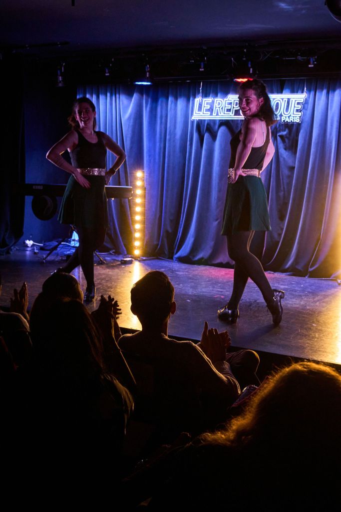 Vinrent ensuite Adèle et Charlotte, un duo de danseuses du cours de danse, non pas de claquettes, à proprement parlé – comme ce qui fut indiqué -, mais de Cieli (à prononcer « kéy-li »), danse traditionnelle irlandaise du XVIIIe siècle ayant des similitudes avec la gigue, également d’origine irlandaise, et que les immigrants irlandais à New York fusionnèrent avec le « shuffle » des esclaves noir pour donner naissance au « buck and wing »… Qui fut, lui, l’ancêtre desdites claquettes, et qui fut particulièrement popularisé en France par Jean-Jacques Goldman avec sa chanson « Et on y peut rien », l’un des titres de son septième denier album studio, en 2001, « Chansons pour les pieds ». Mais, pour en revenir à la prestation de Charlotte et Adèle, c’est sur le titre « Smooth criminal » de Michael Jackson qu’elles ont réalisé leur première chorégraphie, ce qui est déjà agir en professionnelles puisque sachant s’assurer, de fait, l’adhésion du public sans avoir besoin d’avoir un véritable bon niveau de danse (le leur étant tout de même d’un bon niveau). D’ailleurs, le numéro est « honnête » mais loin d’être transcendant, proposant une exécution de bien meilleure qualité lors de leur passage dans la seconde partie du spectacle. Mais, étant, depuis notre enfance, un grand amateur de danses de ce type (nos gènes nous faisant vibrer jusqu’à l’âme pour le « zapateado » du flamenco), nous sommes très exigeant sur la qualité de prestations de ces danses, et il se peut que nous soyons un peu trop dur sur le niveau de ces deux danseuses. Reste que, de ce que nous avons pu voir, nous ne sommes pas sûr qu’il reste une grande marge de progression, à moins d’un « état de grâce » soudain, un de ces jours.