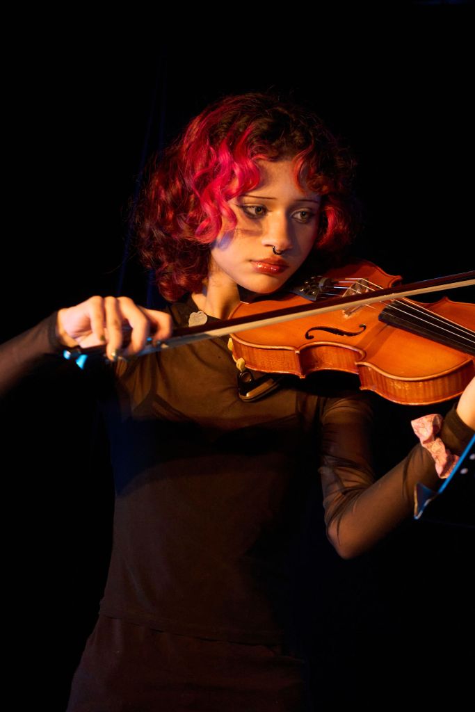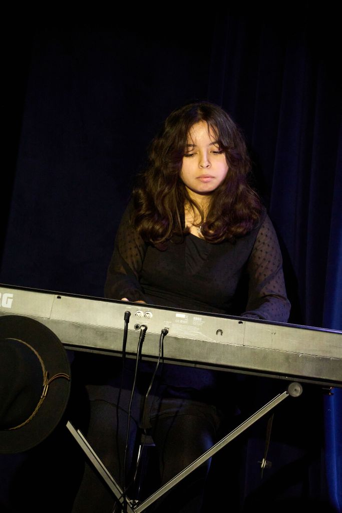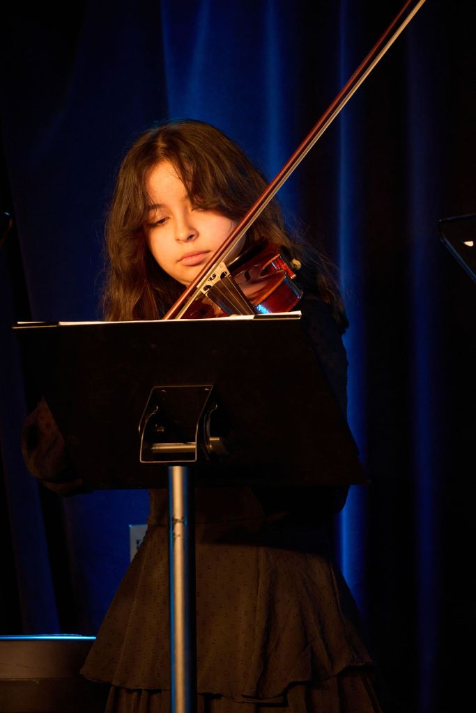 C’est la jeune Eva qui ouvre le défilé de jeunes artistes. Un début en douceur, non seulement parce qu’elle est seule sur scène au piano, mais aussi par le choix de la mélodie et, enfin, parce que l’interprétation manque d’un « petit quelque chose », très probablement dû à un trop plein de tract car Eva, lorsqu’elle clôturera le spectacle par un autre morceau au piano, fera preuve d’une très bon niveau de maîtrise de son instrument. D’ailleurs, d’instrument, Eva en joue un autre (au moins pour cette soirée) et elle le montrera à deux autre reprises au sein d’un quatuor à cordes de trois violons et d’un violoncelle, avec trois autres jeunes musiciens – dont le seul garçon comme violoncelliste -, pour deux pièces classiques (dont, la seconde fois, un opus du compositeur autrichien Joseph Haydn) – passant après le deuxième rappeur lors de la première partie du spectacle -, qui furent de bonne tenue et qui font que, tout ce que nous regrettons, le concernant, c’est de ne pas pouvoir vous en donner les noms dans ce présent article. Et, pour en revenir à Eva, un conseil de professionnel bienveillant est de changer de coiffure, sans forcément les couper, mais faire de sorte que l’on puisse bien voir son visage qui est trop occulté par sa chevelure généreuse.
