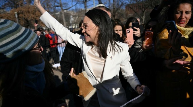 • María Corina Machado, opposante de longue date au régime de Nicolás Maduro, avait été récompensée pour son engagement en faveur d’une transition pacifique vers la démocratie au Venezuela.