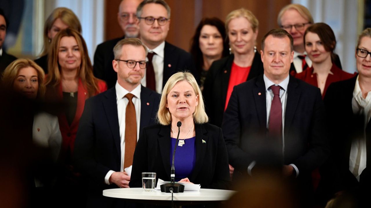 Sweden’s Prime Minister Magdalena Andersson presents her team of new ministers during a news conference after the government declaration in the Swedish parliament Riksdagen, in Stockholm, Sweden November 30, 2021. Pontus Lundahl/TT News Agency via REUTERS ATTENTION EDITORS – THIS IMAGE WAS PROVIDED BY A THIRD PARTY. SWEDEN OUT. NO COMMERCIAL OR EDITORIAL SALES IN SWEDEN.