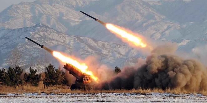 (FILES) This undated handout photo released by the Korean Central News Agency on January 5, 2009 shows a missile-firing drill at an undisclosed location in North Korea. North Korea test-fired two short-range missiles off its east coast on October 12, 2009, a South Korean official said. The official, speaking to AFP on condition of anonymity, also said the North had warned fishing boats to stay clear of parts of its coast from October 10-20. RESTRICTED TO EDITORIAL USE AFP PHOTO / FILES / KCNA via KNS